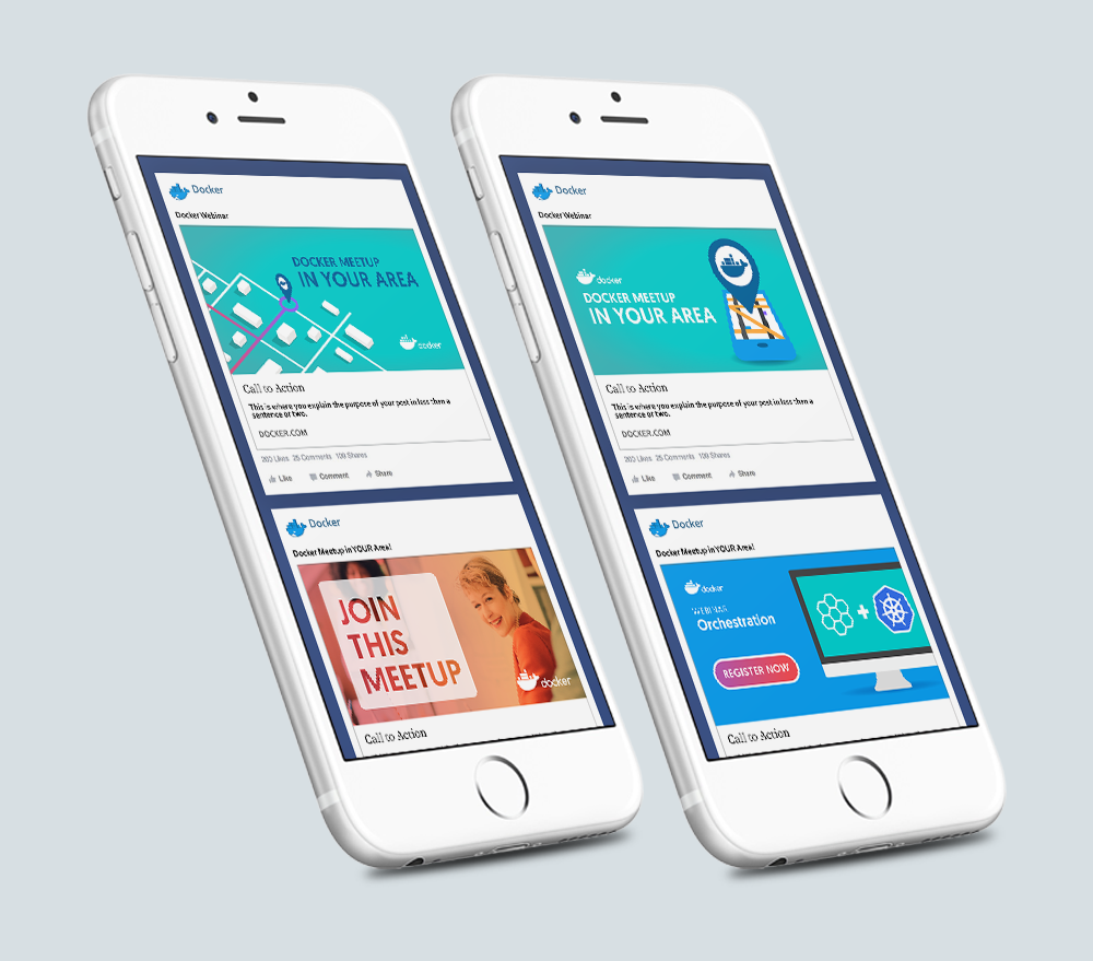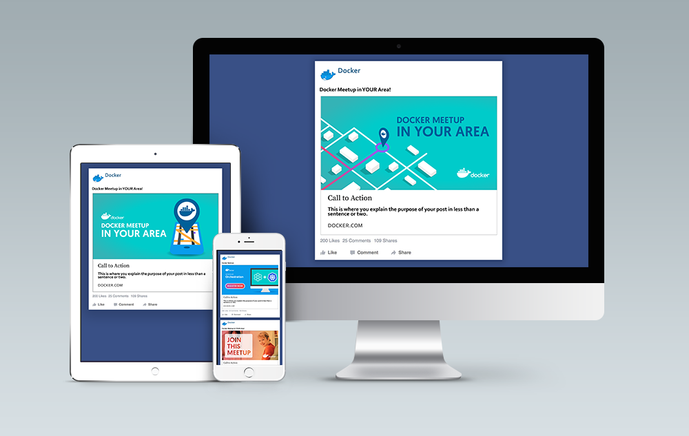 Create social media banner ads for multiple platforms to promote Docker events.